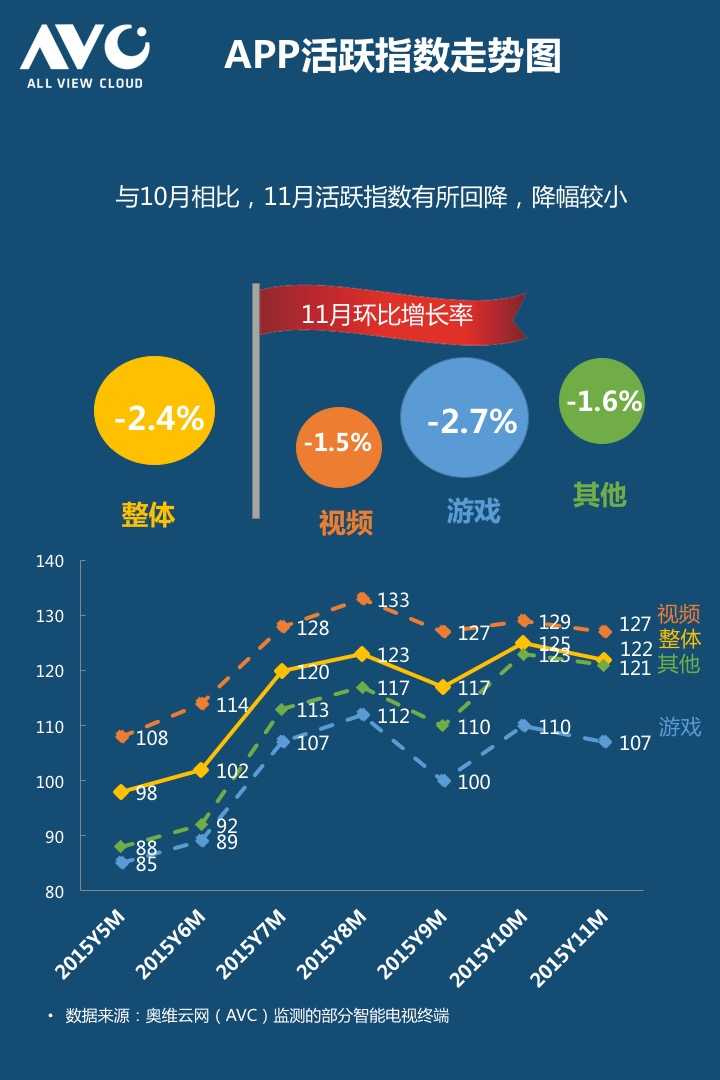 奥维云网:2015年11月中国OTT指数报告 更多阅读:奥维云网:2018年中国OTT发展预测报告奥维云网:2016年第一周OTT盒子销量为14.9万台奥维云网:2015年10月份中国OTT发展研究奥维云网 :2016年10月24日-10月30日OTT盒子观察报告奥维云网:2017年中OTT运营大数据蓝皮书奥维云网:2018年4月OTT大屏用户行为月报奥维云网:2017年2月20日-26日OTT盒子观察报告奥维云网:2017年度OTT全量数据排行榜奥维云网发布17年中OTT大数据蓝皮书: OTT用户月活终端8112万台同比增17.9%奥维云网:2016年2月22日-2月28日OTT盒子观察报告奥维云网:2015年4月-9月线上智能电视盒大数据奥维云网:2016上半年中国OTT盒子市场分析及预测奥维云网:2018年OTT电商消费趋势报告奥维云网:2016年4月智能电视日均开机率为56%奥维云网:2016年9月智能电视用户行为分析报告