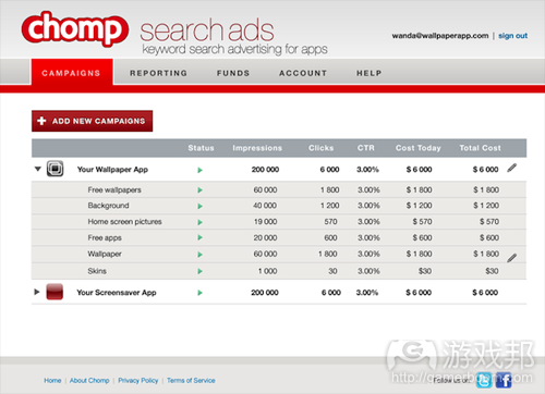Chomp会推荐一些搜索关键字,并让订阅者可以对此进行出价。他们可以举办一些广告活动以选择标价和预算。