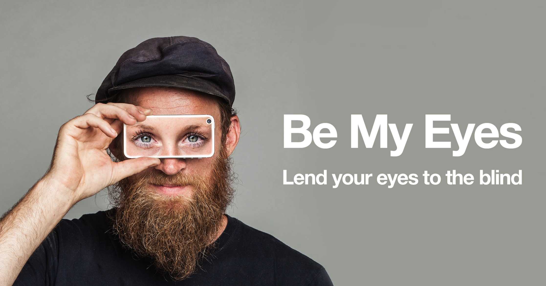 Be My Eyes 是 iPhone 上的一款应用程序,其允许使用者将自己的眼睛「借」给视障人士,以帮助他们看清这个世界。通过视频聊天的方式,世界各地的志愿者与视障人士联系起来,志愿者充当视障人士的双眼,第一时间为其描述所拍摄的实际情况和回答他们所好奇的问题。
