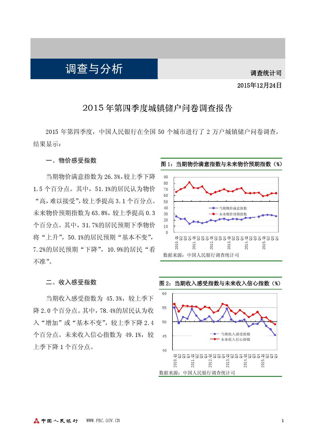 据悉,2015年第四季度《城镇储户问卷调查》是央行在全国50个城市对2万户城镇储户进行的问卷调查。