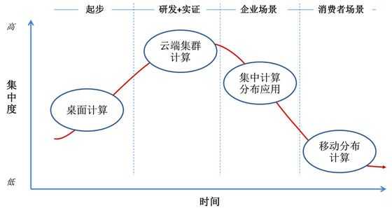 从人工智能的整个发展历程来看,按照应用场景和人工智能资源的集中度,可以大致分成三个阶段。