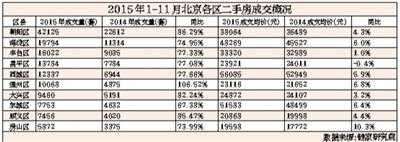 根据伟业我爱我家市场研究院数据统计显示,2015年(前11个月)北京全市二手住宅成交总量逾17.4万套,预计今年全年成交量或将达到约20万套,几近翻倍,这一交易量有望冲击2010年以来的新高。