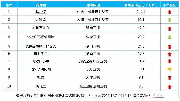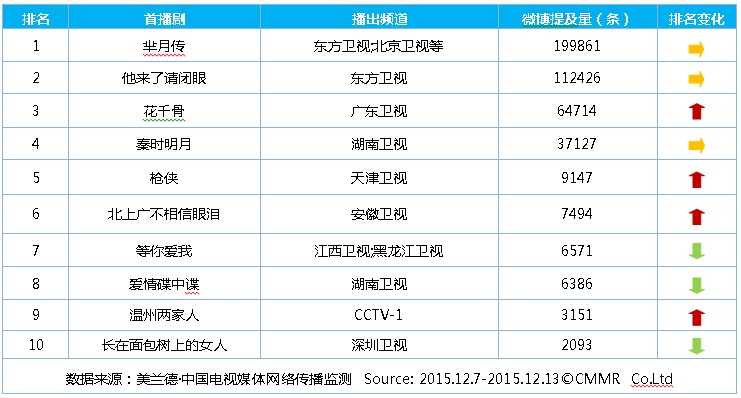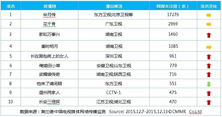 2015年第50周在播首播电视剧网媒关注度TOP10