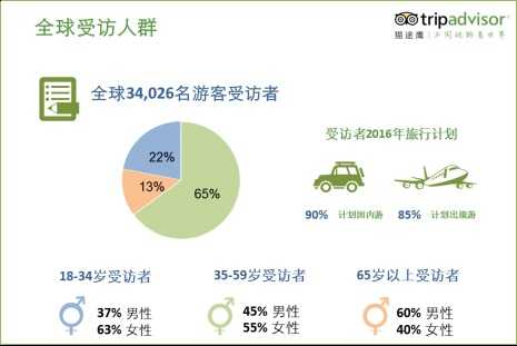 全球最大旅游平台TripAdvisor®(中文名是猫途鹰)公布了“2016年TripBarometer全球旅游经济报告”。该报告由TripAdvisor主导,由独立调研公司Ipsos完成,样本分析基于世界各地44,000多名游客及酒店从业者的调查反馈得来,涵盖全球32个国家和地区,年龄涵盖18岁至65岁以上,是全球范围内规模最大的旅游业趋势预测报告,揭示了2016年全球、各地区、及各国家的旅游业发展动向。