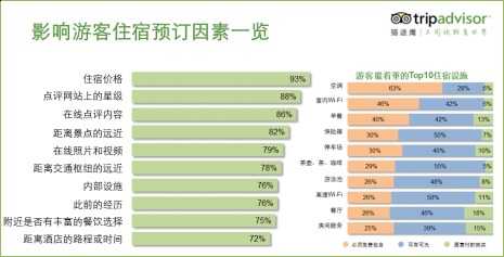 调查发现,影响全球受访者预订酒店的前5大因素是:价格因素、点评网站上的星级、在线点评、是否临近主要景点、线上发布的照片和视频。