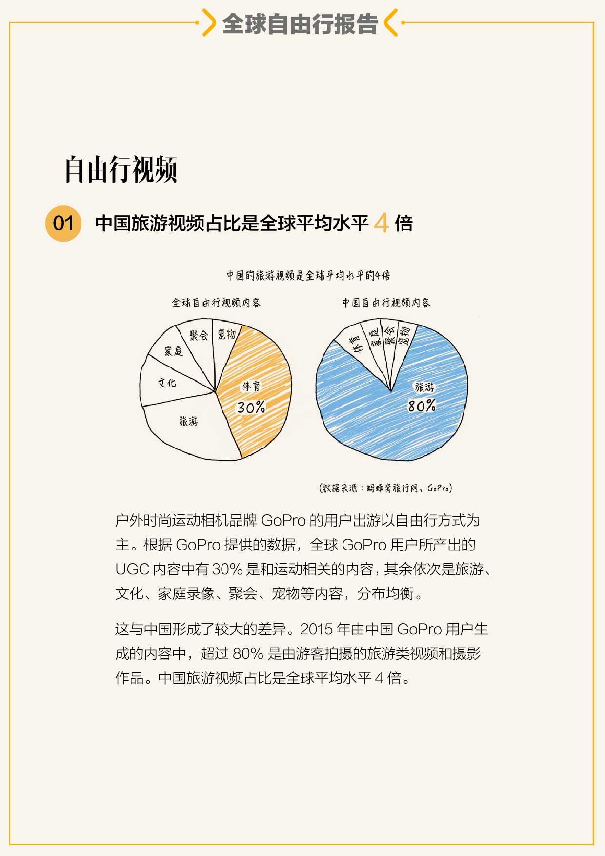 这与中国形成了较大的差异。2015年由中国GoPro用户生成的内容中,超过80%是由游客拍摄的旅游类视频和摄影作品。中国旅游视频占比是全球平均水平4倍。