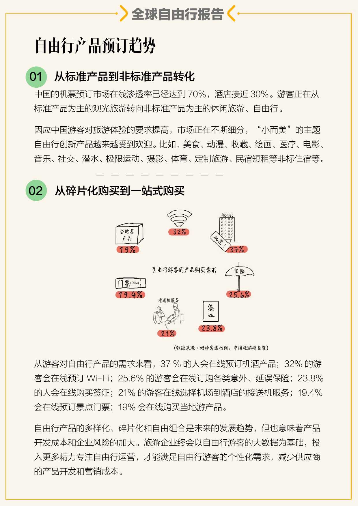 从标准产品到非标准产品转化中国的机票预订市场在线渗透率已经达到70%,酒店接近30%。游客正在从标准产品为主的观光旅游转向非标准产品为主的休闲旅游。