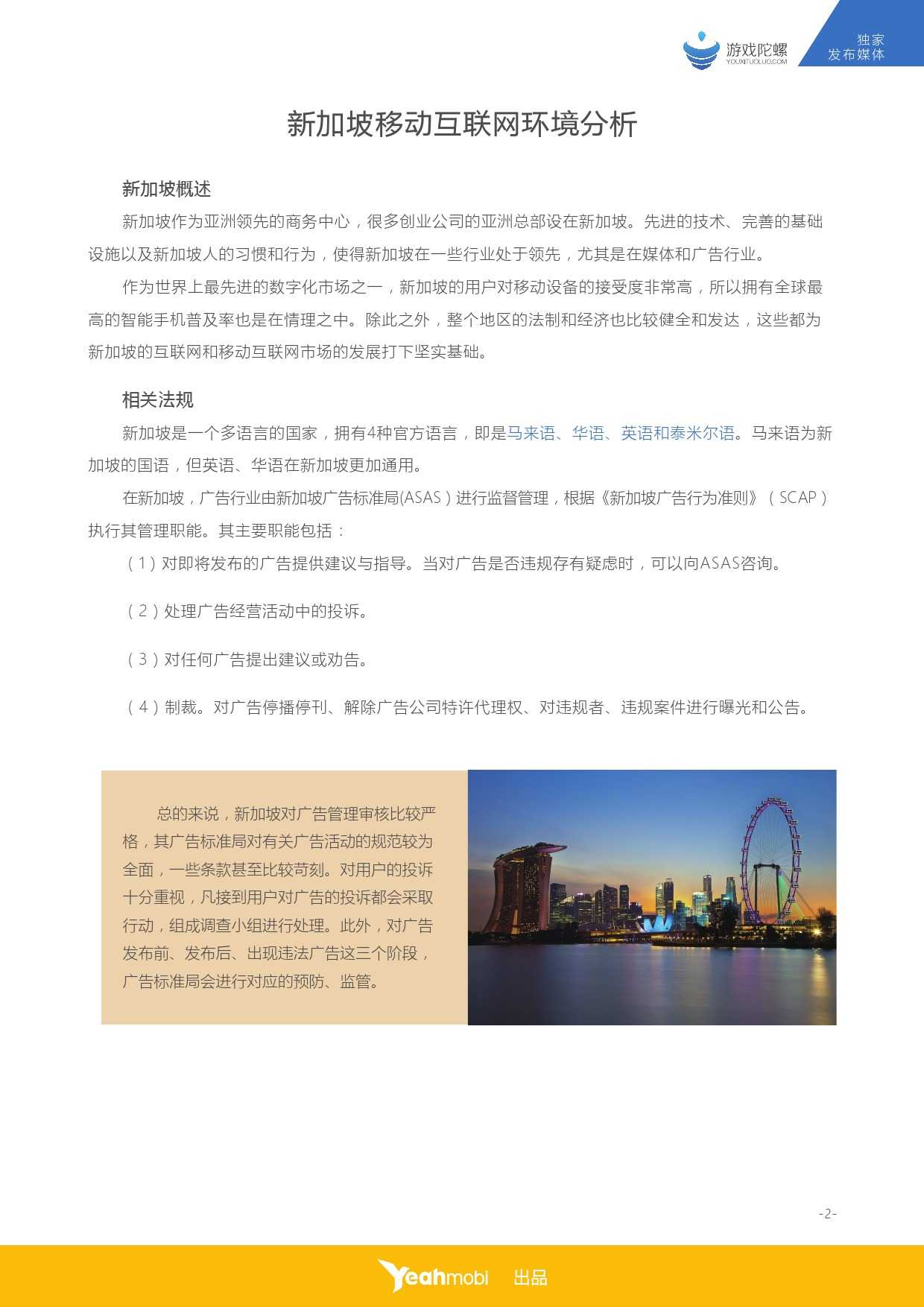 作为世界上最先进的数字化市场之一,新加坡的用户对移动设备的接受度非常高,所以拥有全球最 高的智能手机普及率也是在情理之中。除此之外,整个地区的法制和经济也比较健全和发达,这些都为 新加坡的互联网和移动互联网市场的发展打下坚实基础。