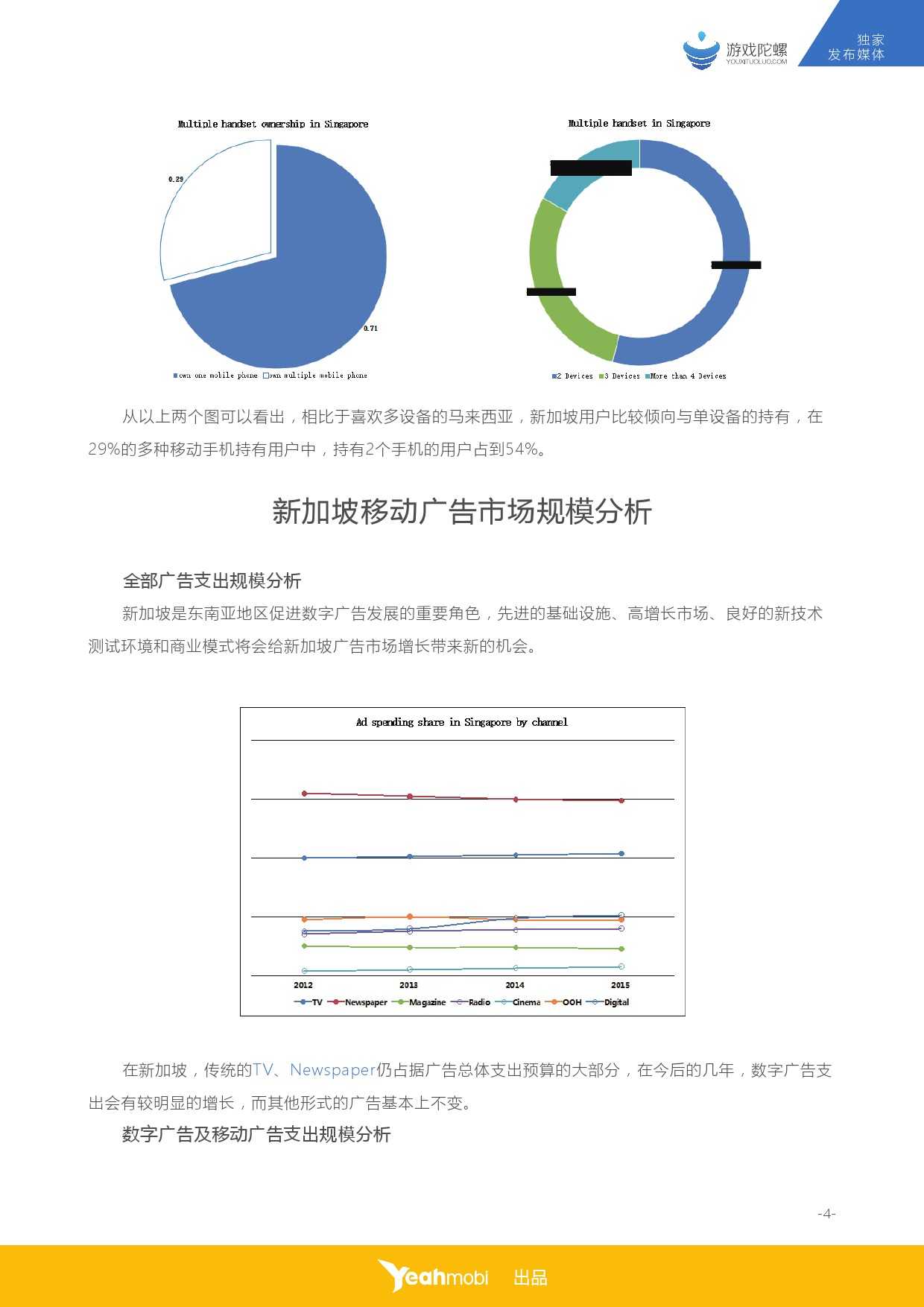 在新加坡,移动广告和营销支出主要有两大因素:移 动广告平台和运营商公司。移动广告的支出目前并没有达 到应有的数量,为什么移动广告处在一个比较低数量呢? 目前来看,新加坡的广告主还未真正的利用好移动广告这 一渠道。