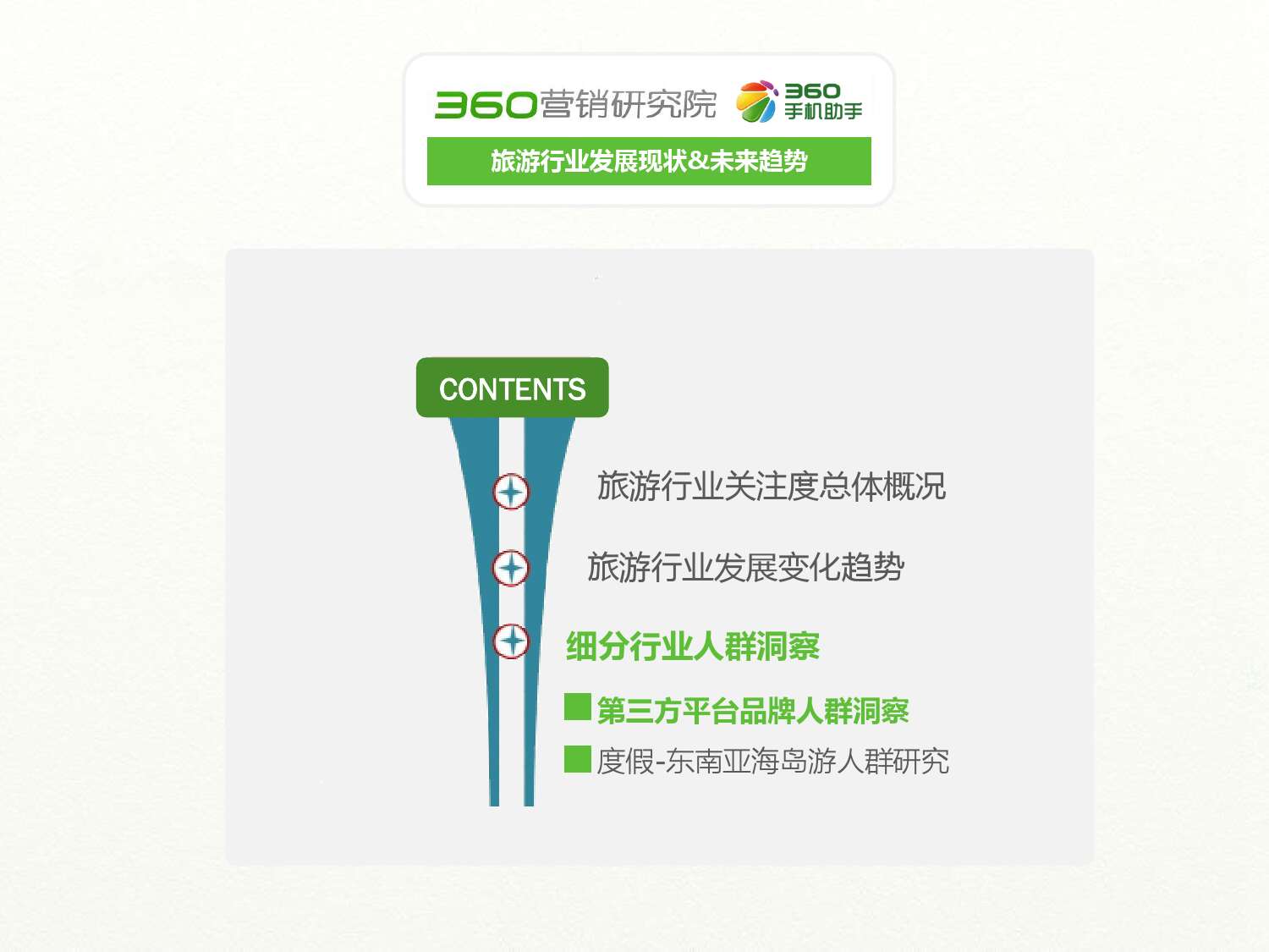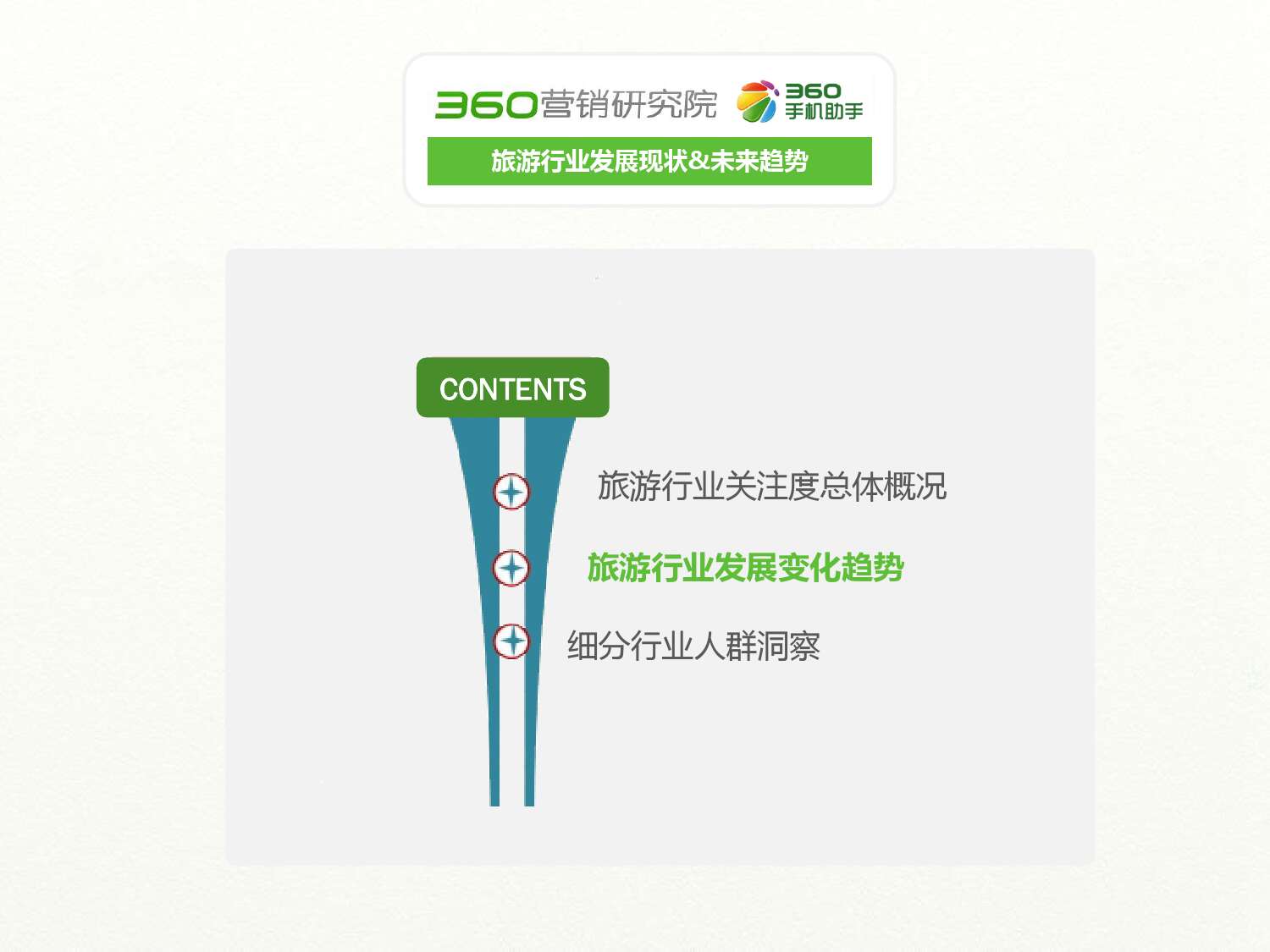 360:2015年旅游行业发展现状&未来趋势 更多阅读:旅游行业是最先受到数字化变革影响的几大行业之一2016年中国旅游行业收入情况及2017年发展趋势预测分析驴迹科技:2020年7月全国旅游行业招标信息调研驴迹科技:2020年6月全国旅游行业招标信息调研Webpower:2015年中国酒店旅游行业邮件营销市场报告微热点:2020年3月中国旅游行业网络关注度分析报告热点大数据:湖南省旅游行业数据报告eMarketer:预计2020年Airbnb在美国使用量将下降60%信息图:移动科技如何改变世界旅游2020航空计划:未来几个月内旅游行业的8大变化趋势报告2015年3月微博旅游行业发展报告ORC International:调查显示社交媒体已全面渗透到旅游行业微热点:2018年度全国旅游行业传播热度分析报告百度研究中心:2013年度旅游行业搜索研究GBTA:2022年全球商务旅游行业可持续发展现况报告