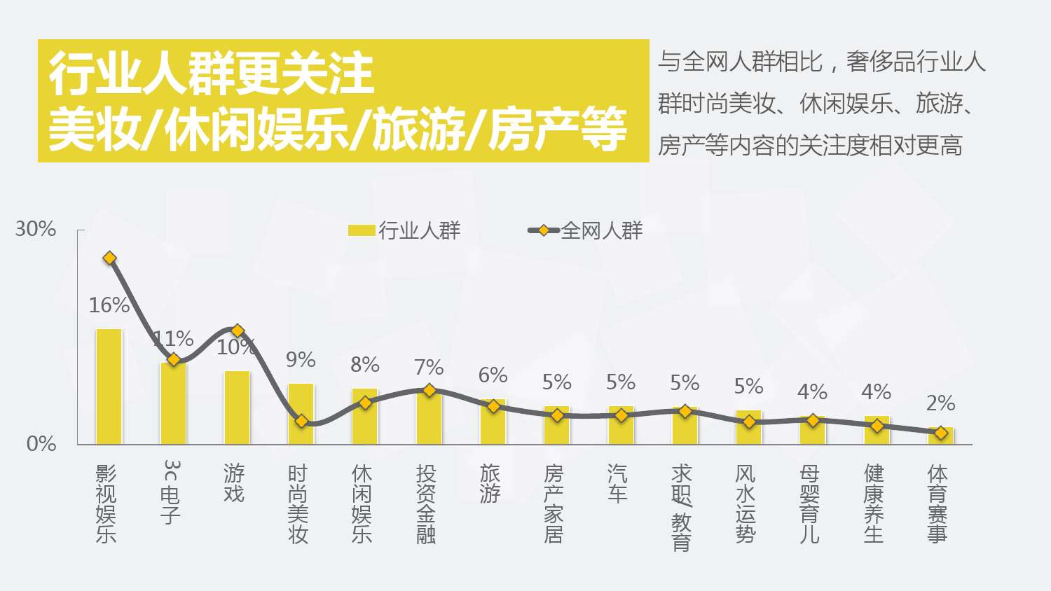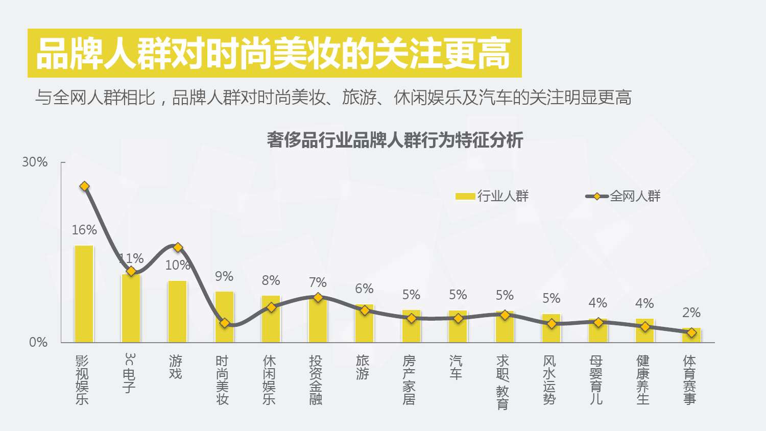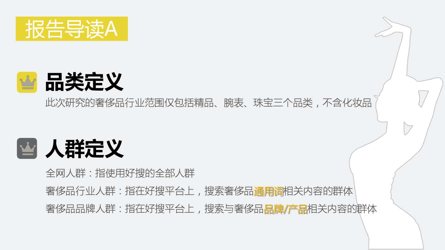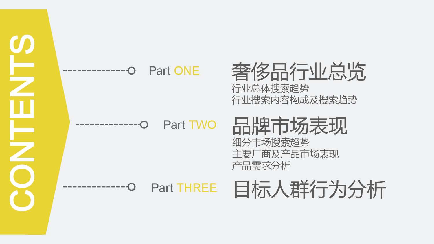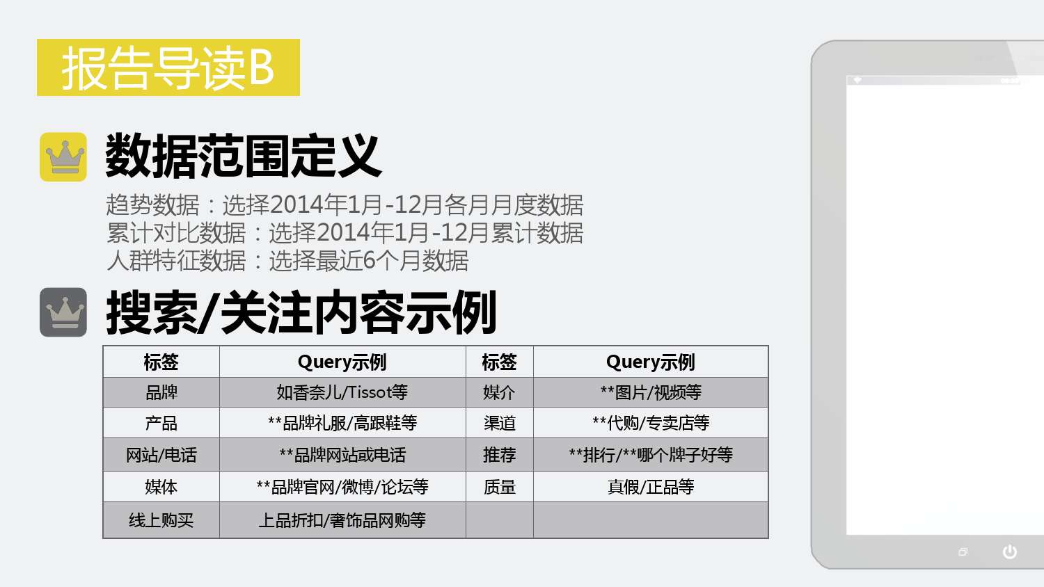 360:2014年奢侈品行业搜索市场分析报告(行业版) 互联网、移动互联对于奢侈品而言,更多的是机遇还是冲击?如何调整品牌管理和营销战略,才能适应竞争的需要?360营销研究院依托360大数据平台,通过对用户搜索行为的深入挖掘,了解和研究用户奢侈品需求关注点及发展趋势,为企业未来的市场营销策略提供支持。 更多阅读:百度研究中心:2012年度奢侈品行业用户搜索研究报告360:2015年Q1汽车行业搜索市场研究报告360:2015年医疗行业搜索行为研究报告360:2015年Q3车险行业搜索市场研究报告360:2014年Q3汽车行业搜索研究Hitwise:2013年6月360搜索市场份额为15.5%2015年奢侈品行业大数据讯飞:2021年奢侈品行业图鉴报告2019-2020中国奢侈品行业社媒营销趋势关键词大数据解读:过去一年奢侈品行业都发生了什么法国巴黎银行:奢侈品行业十大危机360:2023年上半年度男性诈骗受害者人均损失高达4.8万元360财报:2022年Q1-Q3 360营业收入69.35亿元 同比下降18.79%360:2021年上半年度中国手机安全状况报告360:2019 智能网联汽车信息安全年度报告