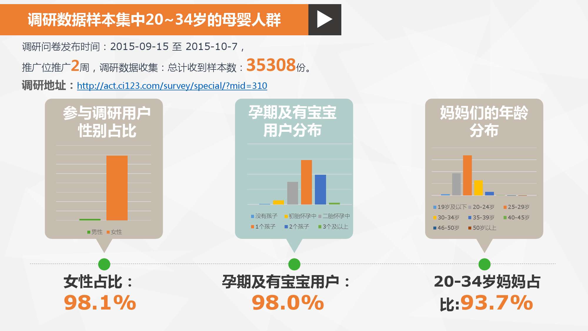 *调研样本来源:育儿网PC站、妈妈社区APP、3大母婴微信公众号:育儿网、女人小秘密、向辣妈进军