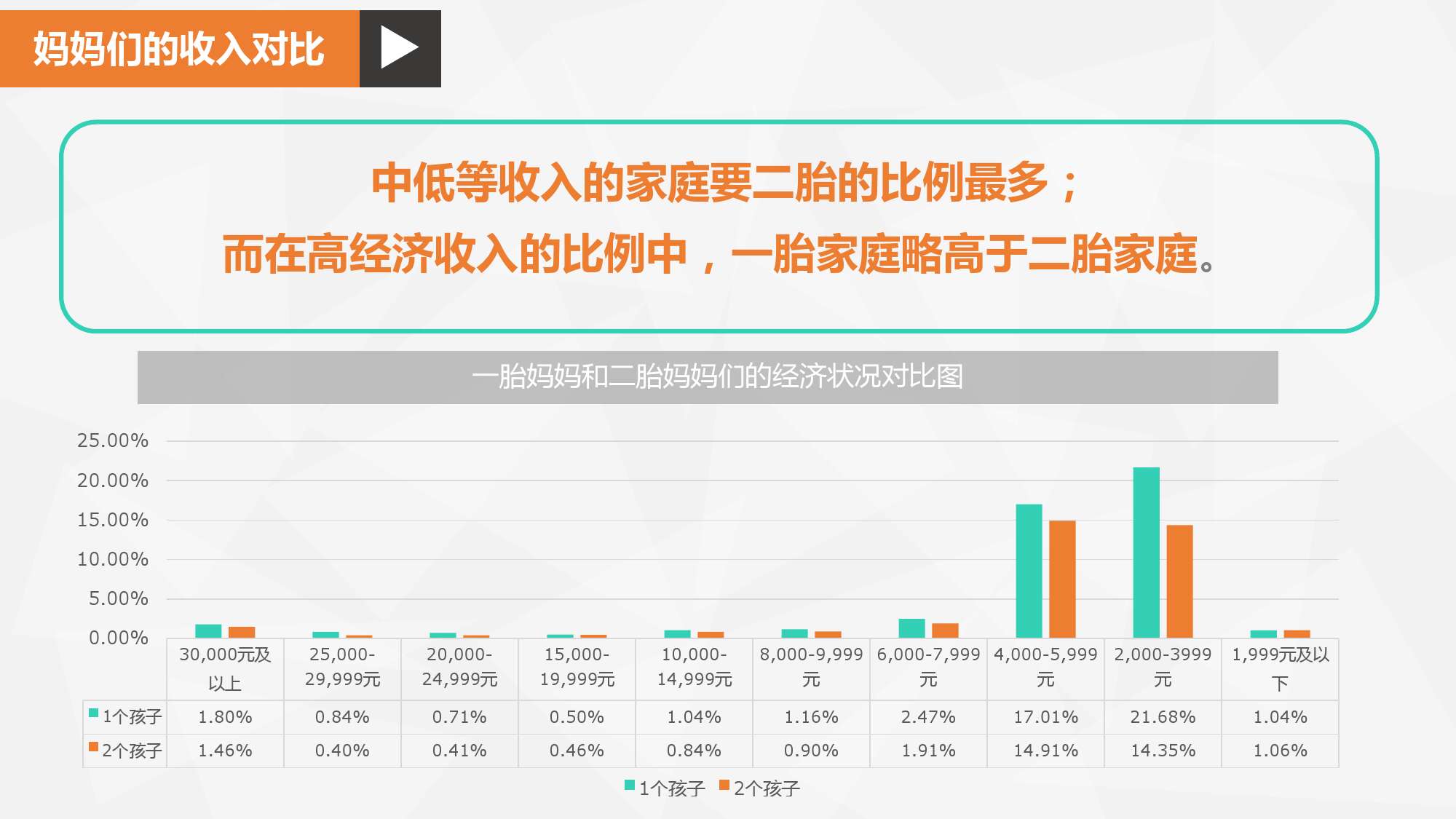 而在对不愿意要二胎的一胎妈妈调查中发现,经济和精力是最主要的制约因素,也从侧面反映出高性价比产品对二胎妈妈的吸引力。