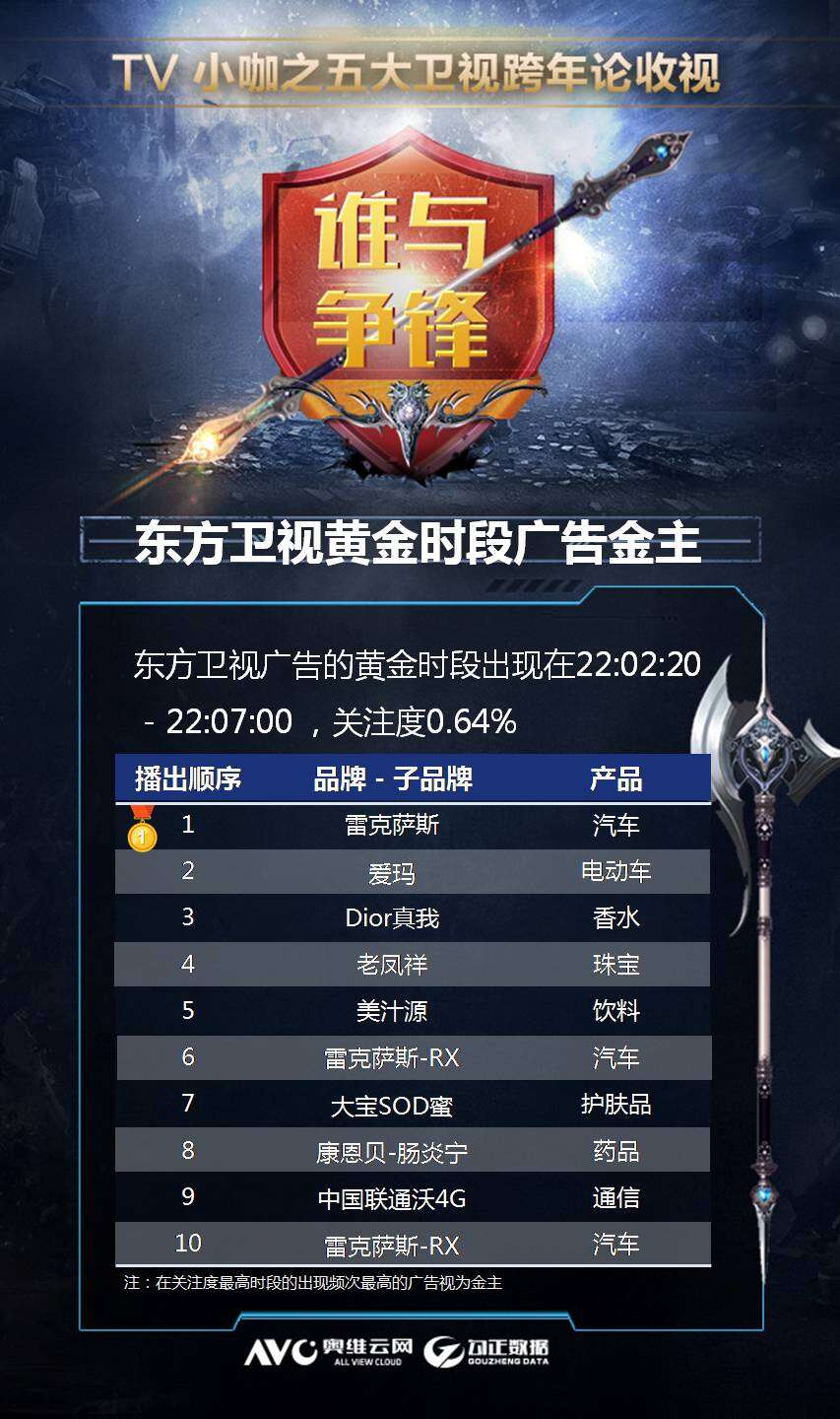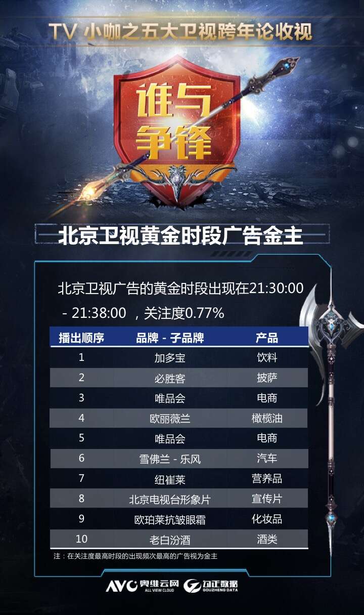 奥维云网:五大卫视收视报告-谁与争锋 (系列二) 更多阅读:奥维云网:五大卫视收视报告-五强争霸 (系列三)奥维云网:五大卫视收视报告-华山论剑 (系列一)奥维云网:中国三四级市场线下家电零售报告MarketResearchReports:预计2017年全球五大新兴电力市场规模超5万亿聚焦智慧家庭领域 奥维云网发布三大系列大数据产品奥维云网发布全新大数据战略 文建平称将以智慧家庭为中心面向行业、企业、个人消费者奥维云网发布17年中OTT大数据蓝皮书: OTT用户月活终端8112万台同比增17.9%奥维云网:2016H1彩电市场总结及展望奥维云网:2020年2月中国彩电市场简析奥维云网:2019年8月中国彩电市场简析奥维云网:2019年第37周彩电市场简析奥维云网:2019年第32周彩电市场简析奥维云网:2018年中国厨卫市场年度总结报告奥维云网:2016年2月22日-2月28日OTT盒子观察报告奥维云网:2016年第一周OTT盒子销量为14.9万台