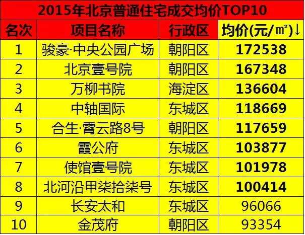2015年共计8个10万+的豪宅项目入市,全年成交量虽然仅有100套,但是成交金额高达36.2537亿。其中单价最高的当属骏豪·中央公园广场,其成交均价约为172538元/平米;卖的最好的则是万柳书院,全年成交金额约为17.52亿。