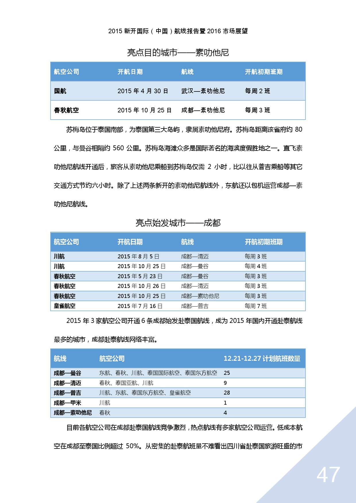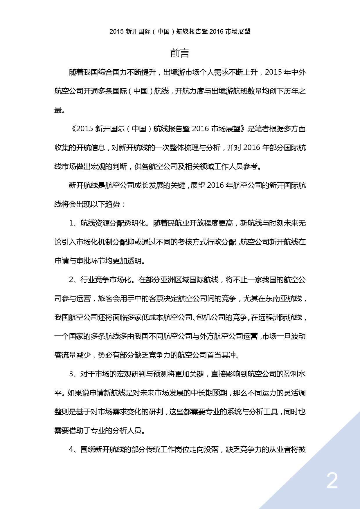 2015新开国际(中国)航线报告暨2016市场展望【含下载】 报告下载:添加199IT官方微信【i199it】,回复关键词【2015新开国际航线报告】即可 报告下载:添加199IT官方微信【i199it】,回复关键词【2015新开国际航线报告】即可 更多阅读:消费者品牌报告:寻找真相IATA:2024上半年中亚客运需求和座位供应比2019年增长80%以上IATA:2023年全球有67000条定期航线Cirium:2021年的航线增长尽管存在阻力,但始发地和目的地之间的运力仍会增加Demand Gen :制造商将数字转换扩展到销售和营销报告K-12报告:2017-2018全球数字学习现状Salesforce:2021年联网消费者报告中国人民银行:2019年第一季度城镇储户问卷调查报告德勤咨询:生成式人工智能对企业的影响和意义超越全球化:英属维尔京群岛在不确定的世界中对全球繁荣的贡献ISAPS:2019年全球美容手术报告全价值全收获:洞察未来系统2023-2025年动力电池产业高质量发展行动方案白皮书2024年全球财富报告:生成式AI引领财富管理新纪元联合国贸发组织:预计2024年全球贸易额达到33万亿美元 历史新高