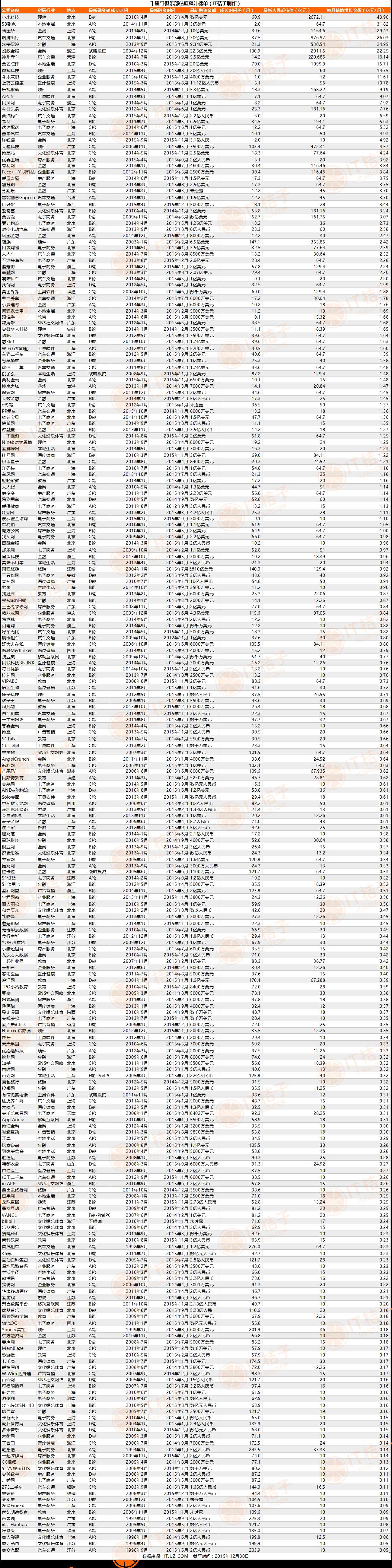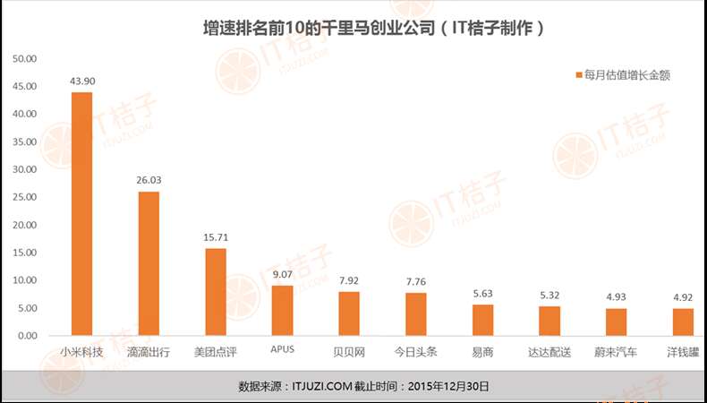 一、《IT桔子2015年中国互联网千里马俱乐部估值飙升榜》