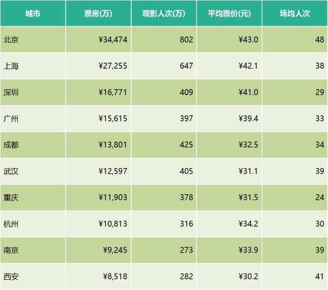 4. 北上广深稳居城市票房排名前列,北京票房3.45亿夺魁;
