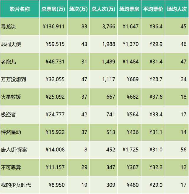 3. 进口片票房表现突出,7部外片霸占60%的票房;