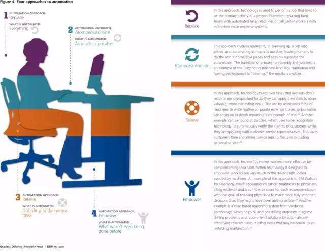 根据自动化对于工人的影响和自动化程度对工作完成度的影响,我们确立了应对自动化的四种主要方式,总结在图4中。