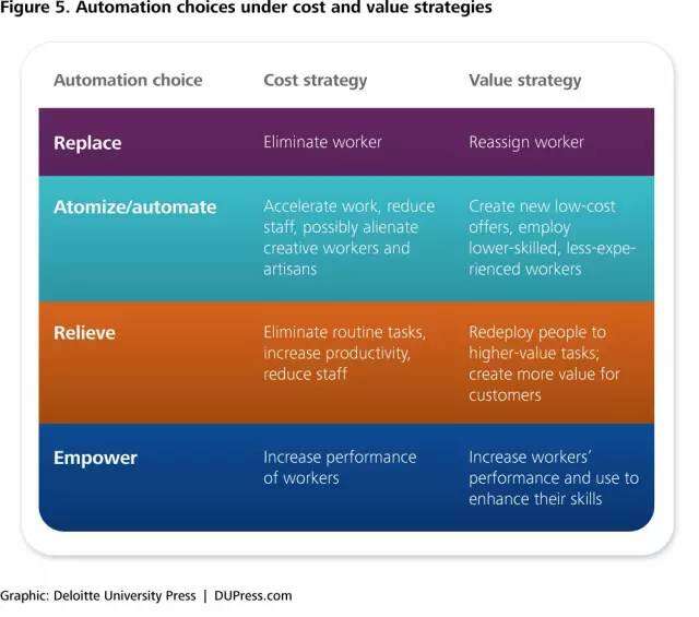 以下是四种自动化选择如何在这两种战略下分别发挥作用: