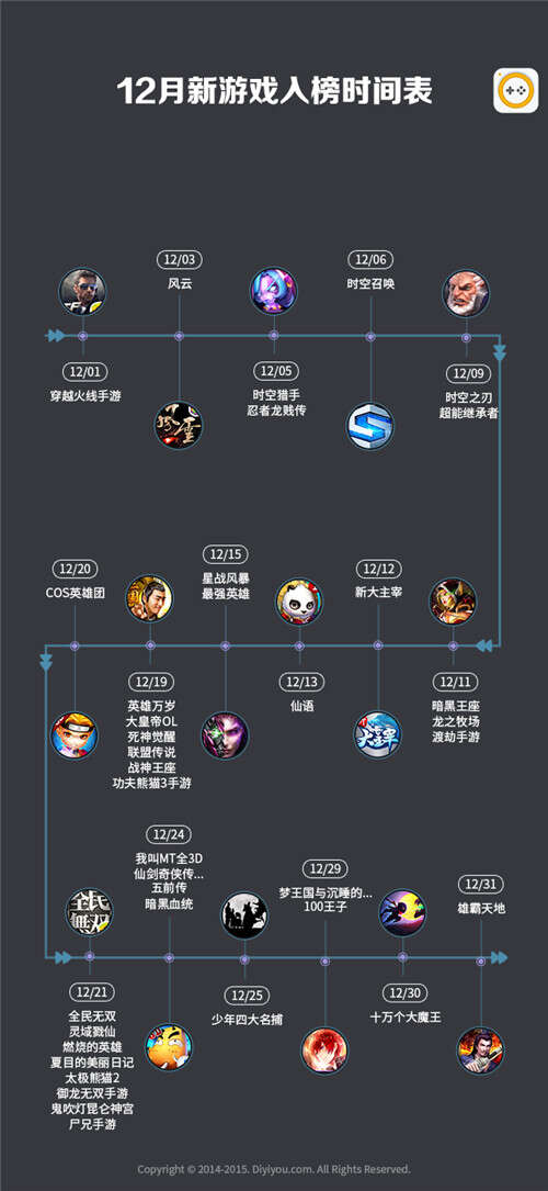 三、12月份新游戏入榜时间、新游Top10以及新游类型分布