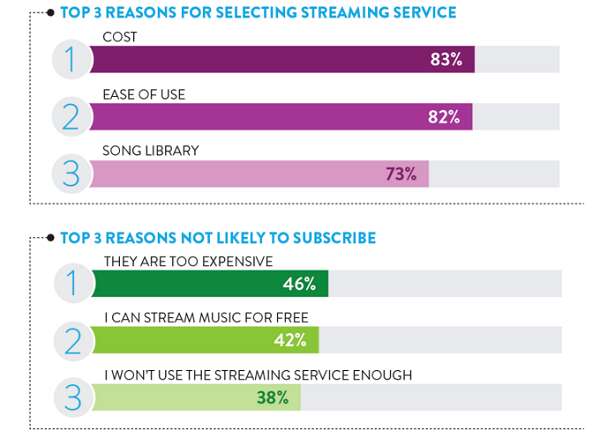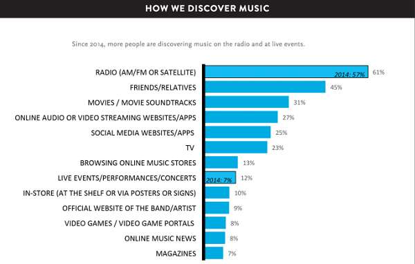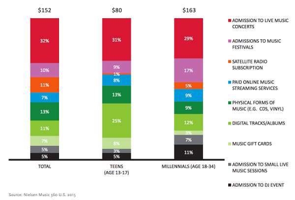 值得一提的是,尽管尼尔森给出了2015年度的音乐报告,它却并没有将之局限于Spotify这样的流媒体服务,甚至还囊括了AOL、Beats(现属于苹果)、Cricket、Google Play、Medianet、Rdio(已被Pandora收购)、Rhapsody、Slacker、Xbox Music、YouTube、以及VEVO等音视频服务提供商。