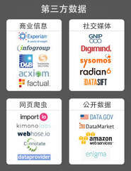 第三方数据出现得比结构化和非结构化数据库都早得多。Dun & Bradstreet从1841年就开始卖数据了。随着数据对每个机构都愈发重要,这个领域也将会获得长足的发展。在数据库生态系统图中,我大体把第三方数据分成四个领域,分别是