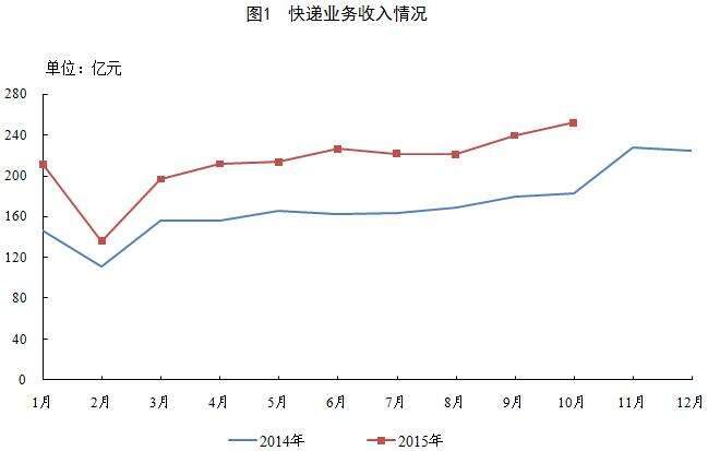 10月份,快递业务量完成19.4亿件,同比增长50.4%;业务收入完成252.2亿元,同比增长38%。