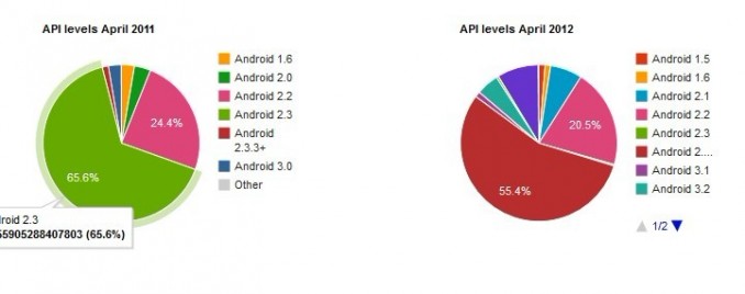 此外,Android的分化实际还不仅仅体现在硬件上,Android的不同版本或多或少也存在这个问题。根据OpenSignalMaps的数据,Android两大最受欢迎的版本实际在设备中的使用度只占到75%,而去年这一数据还占到了90%。