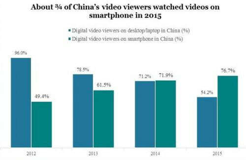 1月20日消息,据国外媒体报道,2015年有超过75%的中国视频用户选择用智能手机观看在线视频,比PC端用户多出22.5%。
