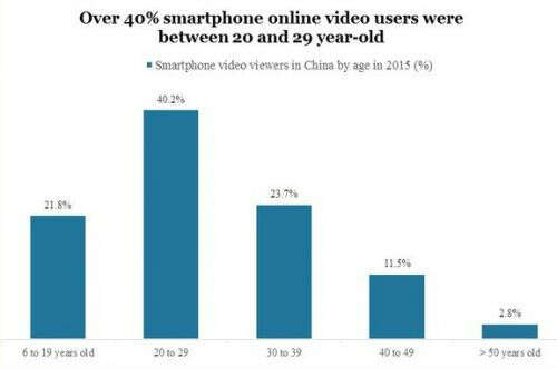 CNNIC数据显示,在2015年,在使用智能手机观看在线视频的用户中,有57.8%为女性。智能手机在线视频用户大多是年轻人,有40%以上年龄区间为20到29岁,超过60%的用户小于30岁。