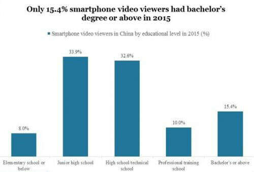 超75%的中国人用智能手机观看在线视频 整体教育水平偏低