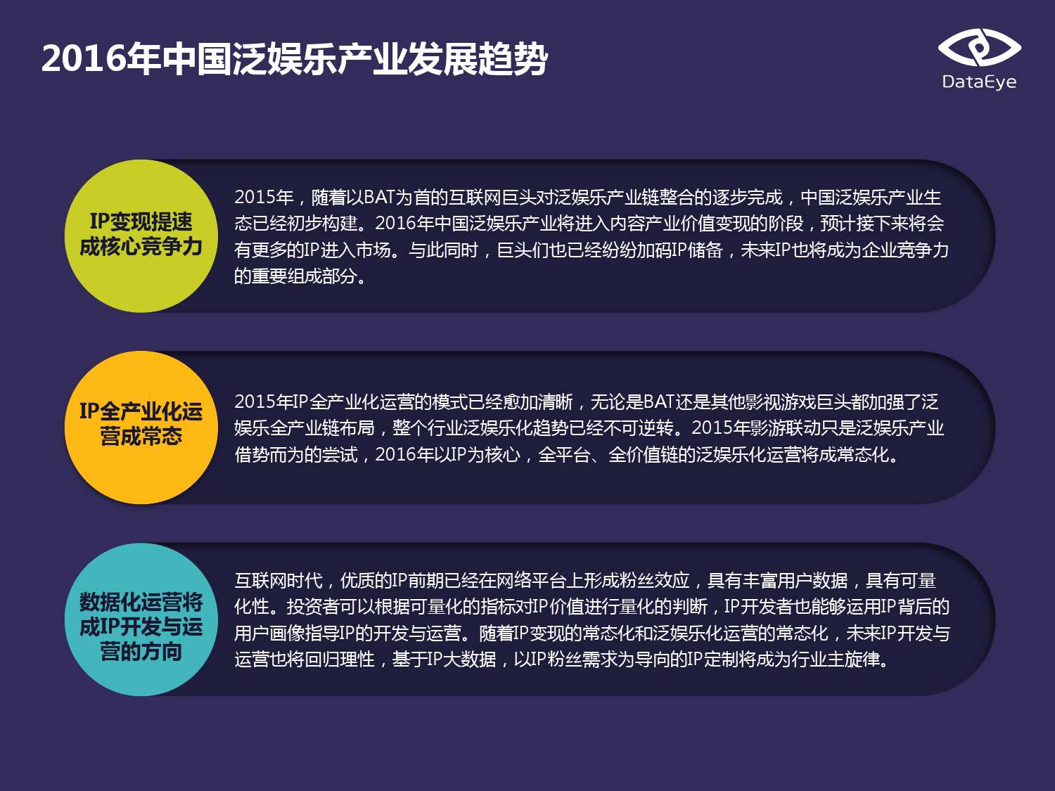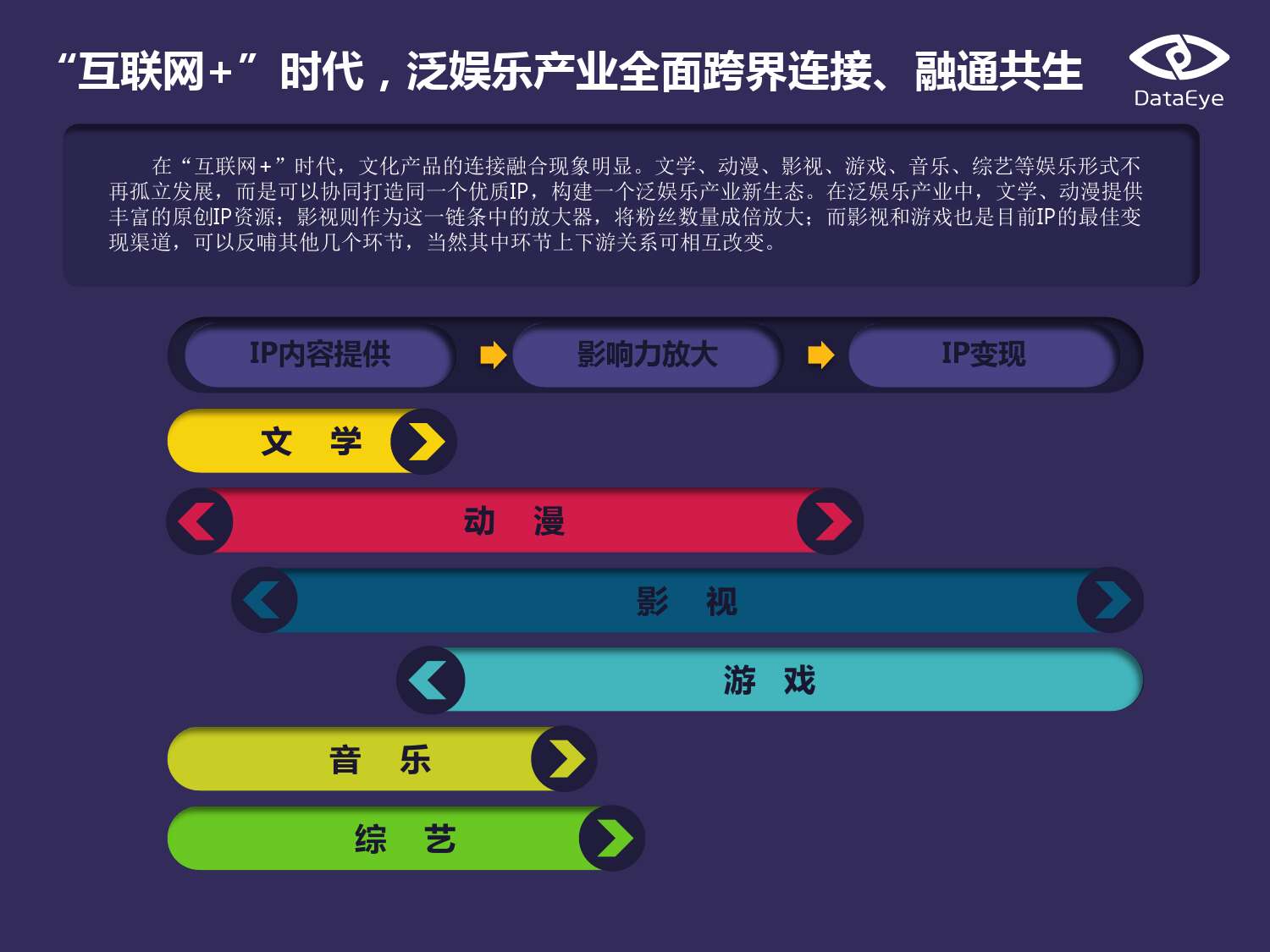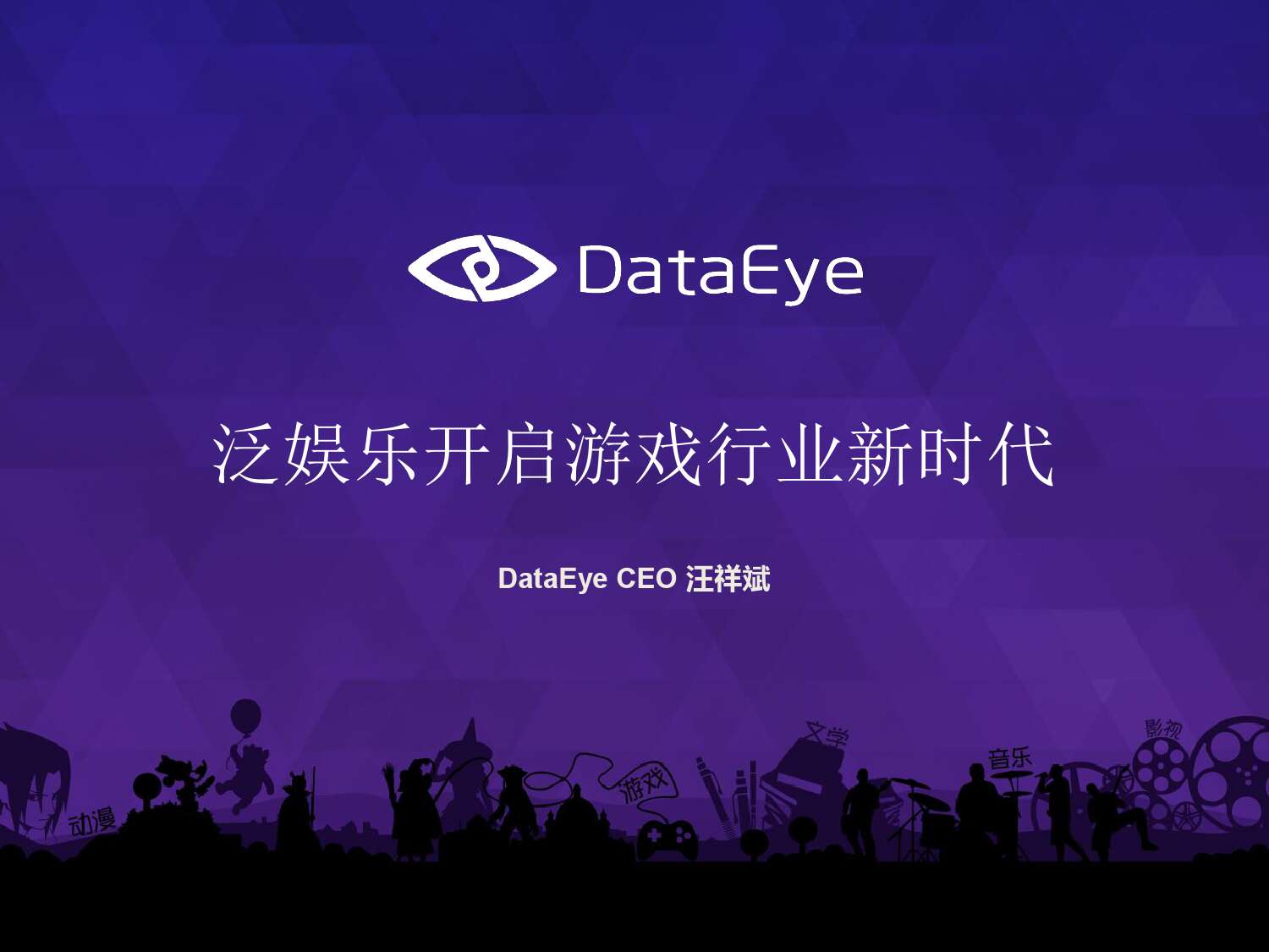DataEye:泛娱乐开启游戏行业新时代 更多阅读:DataEye:2015年泛娱乐白皮书热云数据:2018-2019移动互联网泛娱乐行业特征报告2016全面爆发的泛娱乐研究分析2015年泛娱乐核心产业规模4229亿DataEye:2020移动游戏全年买量白皮书DataEye:2020年10月份手游买量报告DataEye:2020半年度二类电商广告投放白皮书DataEye:2020年移动游戏半年度买量白皮书DataEye:2019二类电商广告投放白皮书DataEye:2019移动游戏全年买量白皮书DataEye:2019移动游戏半年度买量白皮书DataEye:2016年1月中国手机游戏新品洞察报告DataEye:2015年Q4 手游新品洞察报告DataEye:2015年Q3 HTML5游戏数据报告DataEye:2015年中国手游市场新品洞察报告