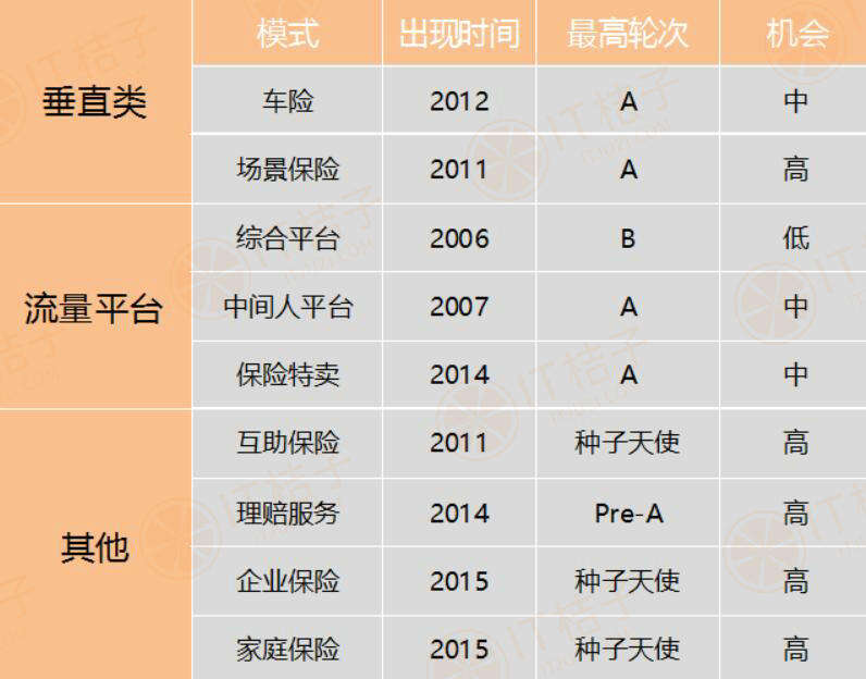 互联网保险行业已经发展了10多年了,在网上卖保险并不是新鲜事,高频、低获客成本和创新通常为衡量一个好的商业模式的标准,IT桔子列出了保险行业的商业模式,看一下哪些商业模式可以撬动保险这个快速增长的市场。