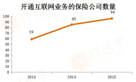 从2013-2015年互联网保险的保费数据上可以看到2015年互联网保费相比2014年增长了近2.5倍!而且这还是截止到2015年10月的数据。开通互联网业务的保险公司的数量也逐年稳步增长,2015年第三季度开通互联网业务的保险公司已超过100家。