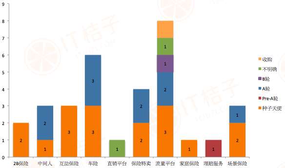 IT桔子在保险领域共收录了32起投资事件,它们的模式分布如下:
