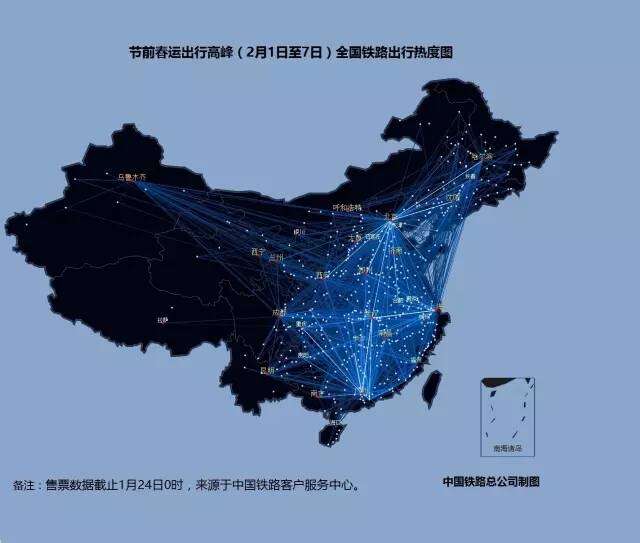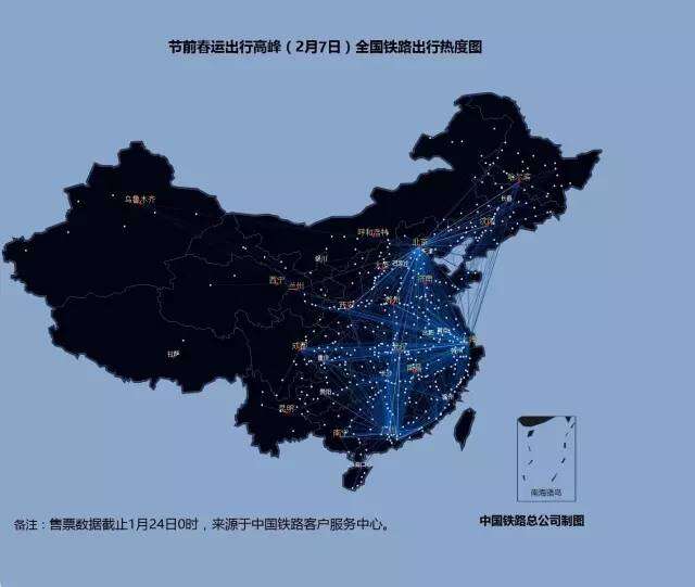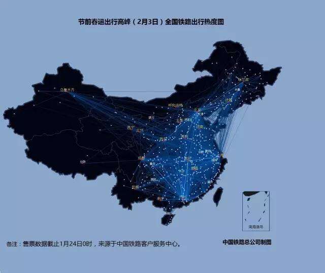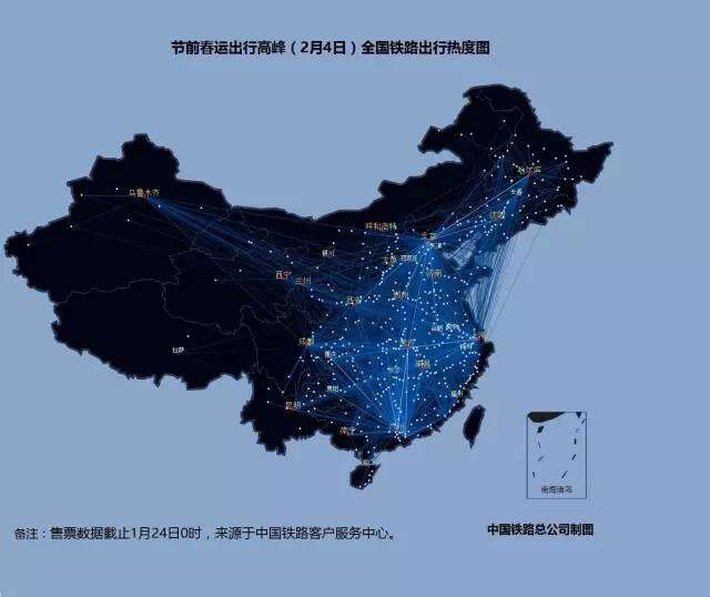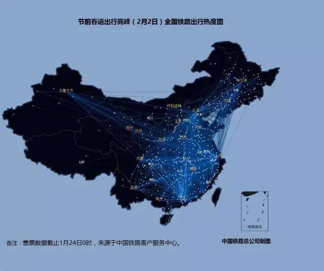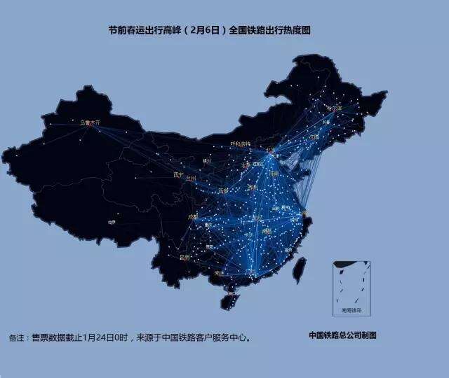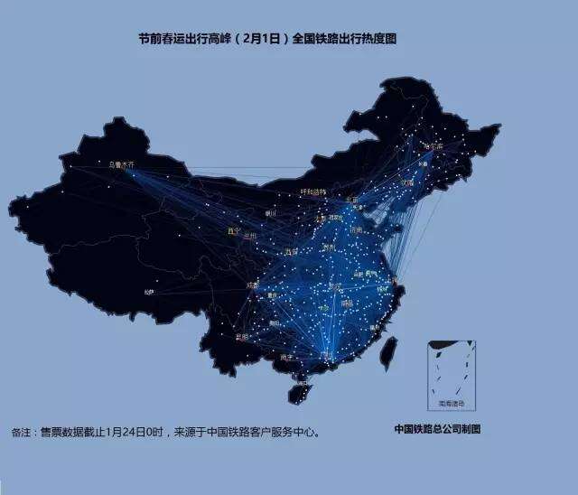 2016年铁路春运大数据:节前全国铁路出行热度图 2月1日至7日全国铁路出行热度图 2月1日全国铁路出行热度图 2月2日全国铁路出行热度图 2月3日全国铁路出行热度图 2月4日全国铁路出行热度图 2月5日全国铁路出行热度图 2月6日全国铁路出行热度图 2月7日全国铁路出行热度图 更多阅读:2016农业大数据白皮书关于房事的真实生活大数据六成白领假装运动 体检大数据撕开真相eMarketer:教育仍是大数据的首要问题American Time Use Surve:数据解读美国人民用多少时间化妆2016年中国通信大数据行业发展现状及发展前景预测2016上半年网易云音乐用户行为大数据足球魔方:2016欧洲杯小组赛大数据报告从萧山警匪案看大数据分析预测能力如何创造价值从大数据看农村人口流动艾漫数据:2019上半年各线级城市泛娱乐受众大数据分析报告今夜,大数据带你了解当代青年加班狗大数据告诉你城市里的年轻人都去哪儿了?联通:2019年春节大数据报告货拉拉:2018搬家大数据报告
