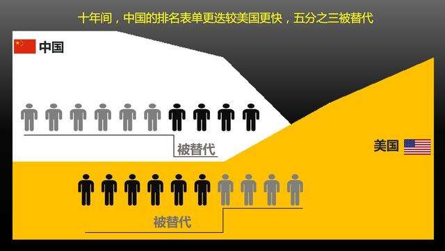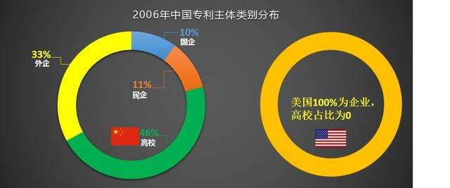 高校在前100名当中占据了46%,在美国的数据中,高校占比为….百分之零。