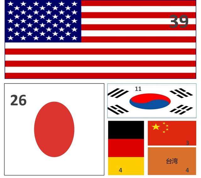 结论是:美国本土,日本、韩国、德国、台湾和中国大陆六分天下。
