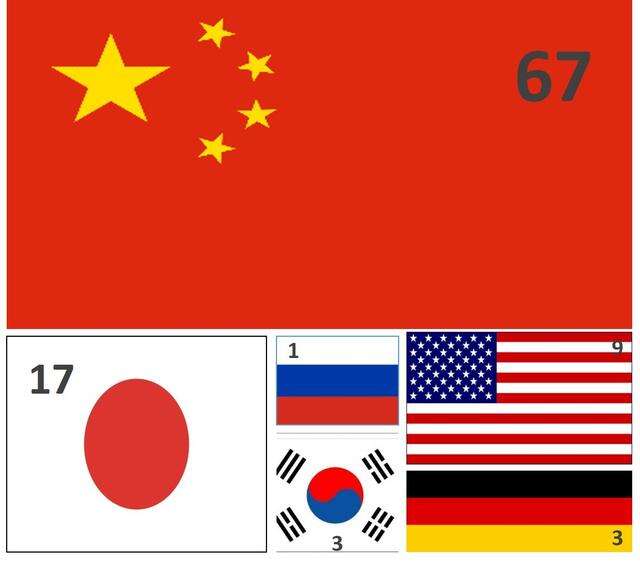 结论是:中国本土、日本、美国、德国、韩国和荷兰六分天下。