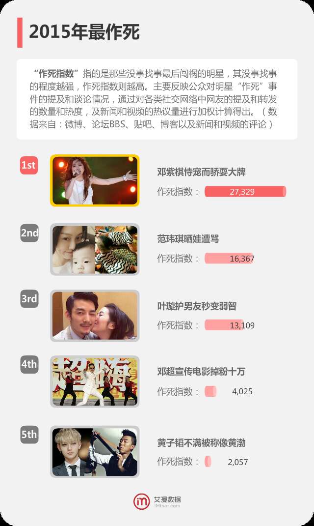 娱乐圈有些明星,本来混得风生水起,可偏偏就自己作死,最后导致no zuo no die。例如因《我是歌手》打响内地市场的邓紫棋,在受邀“双年巅峰会”时耍大牌违反节目规定,惹怒节目组导演的同时也惹怒网友,他们力撑节目组更劲爆留言说“你不换人,我们换台!”