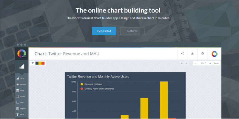 ChartBlocks是一个易于使用在线工具,它无需编码,便能从电子表格,数据库中构建可视化图表。整个过程可以在图表向导的指导下完成。您的图表将在HTML5的框架下使用强大的JavaScript库D3.js创建图表。你的图表是响应式的,并且可以和任何的屏幕尺寸及设备兼容。 您还可以将图表嵌入任何网页中,分享在Twitter和Facebook上。