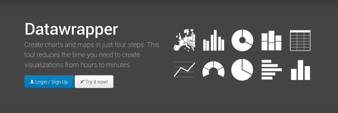 Datawrapper是一款专注于新闻和出版的可视化工具。华盛顿邮报,卫报,华尔街日报和Twitter等媒体都使用了这一工具。Datawrapper非常容易使用,不需要任何编程基础。你只需要上传你的数据,便能轻松地创建和发布图表,甚至是地图。Datawrapper提供了众多的自定义布局及地图模板。