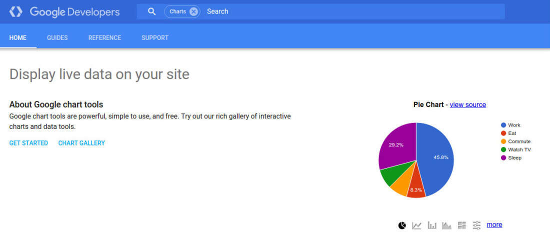 Google Charts 以HTML5和SVG为基础,充分考虑了跨浏览器的兼容性,并通过VML支持旧版本的IE浏览器。所有您将创建的图表是交互式的,有的还可缩放。Google Charts是非常人性化和他们的网站拥有一个非常好的,全面的模板库,你可以从中找到所需模板。