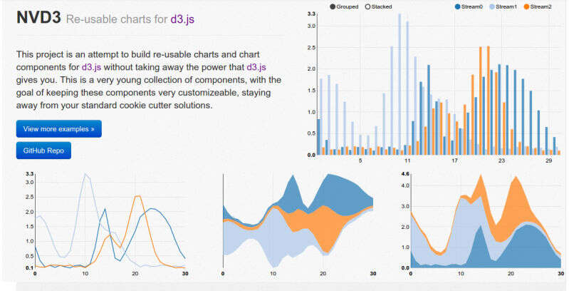 NVD3运行在d3.js之上, 它可建立可重用的图表组件。该项目的目标是保持所有的图表整洁和可定制性。 NVD3是d3.js之上的简单的接口,保持了d3.js的所有强大功能。 NVD3由Novus Partners前端工程师开发和使其保持了图表技术洞察力。