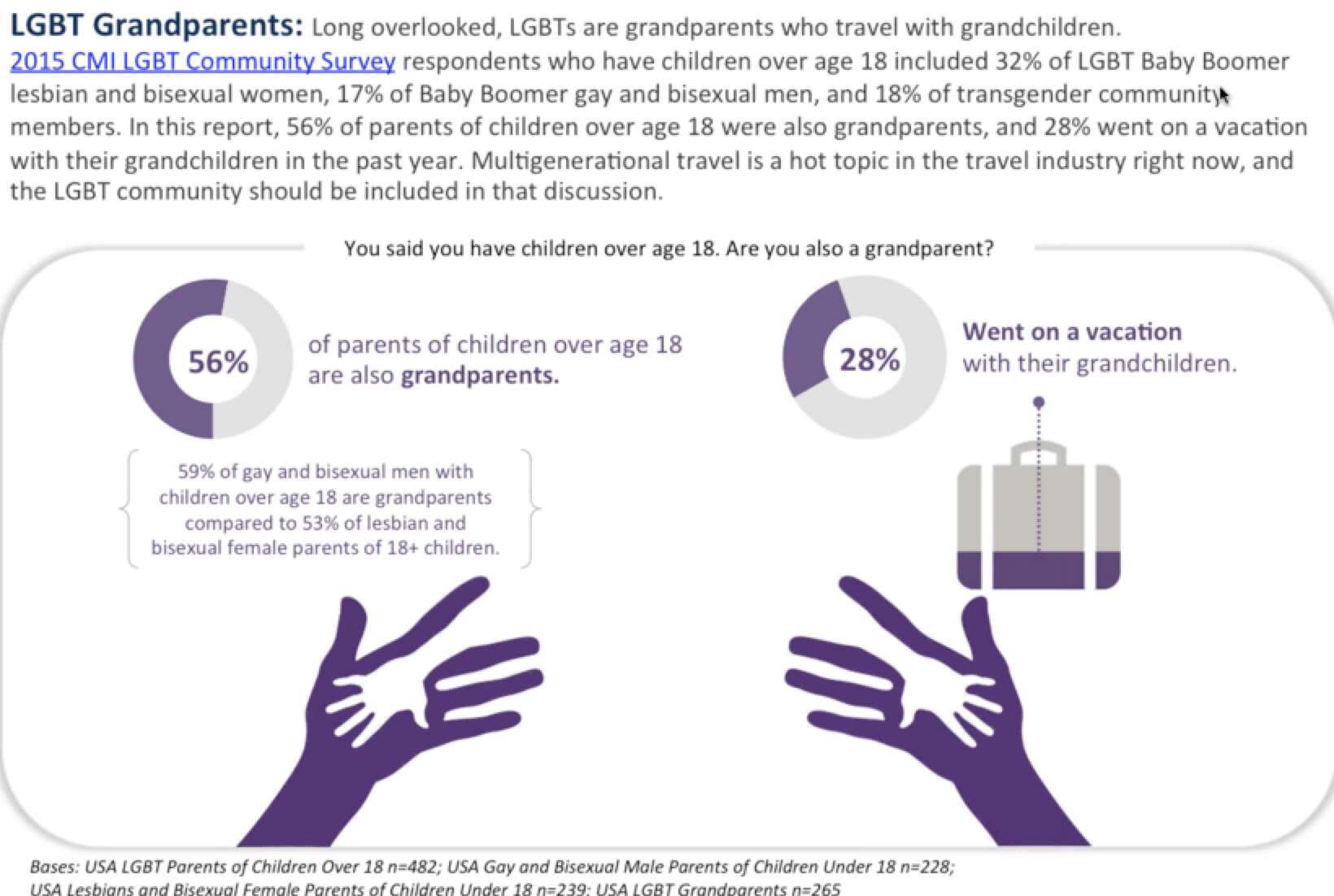 图6:老一辈的LGBT游客经常因为与社区有关的刻板印象而被遗忘。不过,约56%的受访者表示28%的祖父母与他们的孙子一起度假。