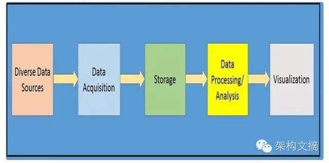 大数据系统应该包含的功能模块,首先是能够从多种数据源获取数据的功能,数据的预处理(例如,清洗,验证等),存储数据,数据处理、数据分析等(例如做预测分析,生成在线使用建议等等),最后呈现和可视化的总结、汇总结果。