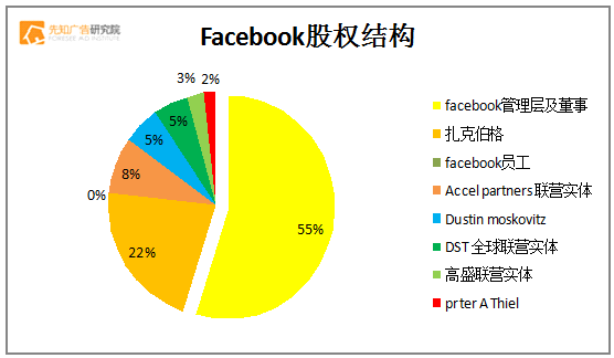 按照招股书公布的A类普通股、B类普通股总数(截至2011年12月31日的IPO前,具体数目可能有出入)计算,Facebook的前5名大股东分别是包括扎克伯格在内的 Facebook 高管及董事、Accel Partners、DST 全球、高盛以及 T. Rowe Price Associates (新浪的主要股东之一),其大约持股比例(经四舍五入)如下: