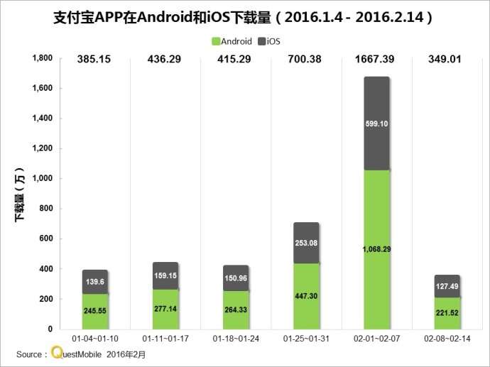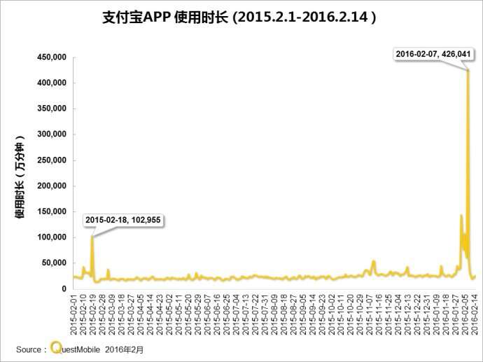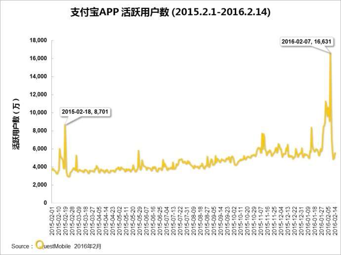 不过从实际数据上看,QuestMobile数据显示,支付宝过年那天日活突破1.6亿,节前一周下载量突破1600万,与使用时长一起,甩出平日N条街,这又是一次非常完美的“用户掠夺战”。至于后期走势会如何,只有拭目以待了。